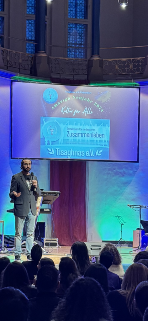 Die diesjährige Feier im Tisaghnas e.V. zum Anlass des Amazighischen Neujahrs 2974 unter motto Kultur für alle in Wuppertal war ein voller Erfolg.Gäste wie Hafssa da, Tarwa n Chekh Muhand, Bouziane , Boujemaa Comedy, Mustafa Buya, und die anderen haben dem Publikum eine kulturell wertvollen und unvergesslichen Abend bereitet. Das Künstleraufgebot sorgte für ein absolut euphorische und verrückte Stimmung unter den Gästen, so dass einige der geladenen Honoratioren sich von ihren Sitzen trennten um anschließend auf der Tribüne ausgelassen tanzten und außergewöhnliche Tanzchoreographien unter tosendem Beifall der Zuschauer boten. Das Programm zeichnete sich durch seine Vielfätigkeit und Abwechslung aus. Neben musikalichen Einlagen diverser künstler, durften die Gäste auch beherzt bei Comedy Einlagen lachen. Weiterhin führten künstler Theater und kunst vor. Die abschließende Ehrung erwies den Trägern und helfenden Händen der Feier den gebührenden Respekt und Dank. Auch kulinarisch wurden die Gäste auf höchstem Niveau verwöhnt. Neben süßen Speisen,wurden auch herzhafte Gerichte und Snacks angeboten,welche die Gäste zum Schlemmen und Genießen einladen. Alles in allem ist die diesjährige Neujahrsfeier entsprechend der Erwartung ein Riesenerfolg gewesen. An dieser Stelle danken wir allen Trägern, Teilnehmern und Helfern, die den Abend unvergesslich und einzigartig gemacht haben.